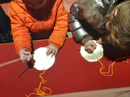 Im Anschluss an die Power-Point-Präsentation erhielten alle Kinder Münzen aus Goldpapier, die von Christine vorbereitet wurden. Darauf durfte jedes Kind sein Gesicht zeichnen, seinen Namen schreiben und sich diese Münze umhängen.